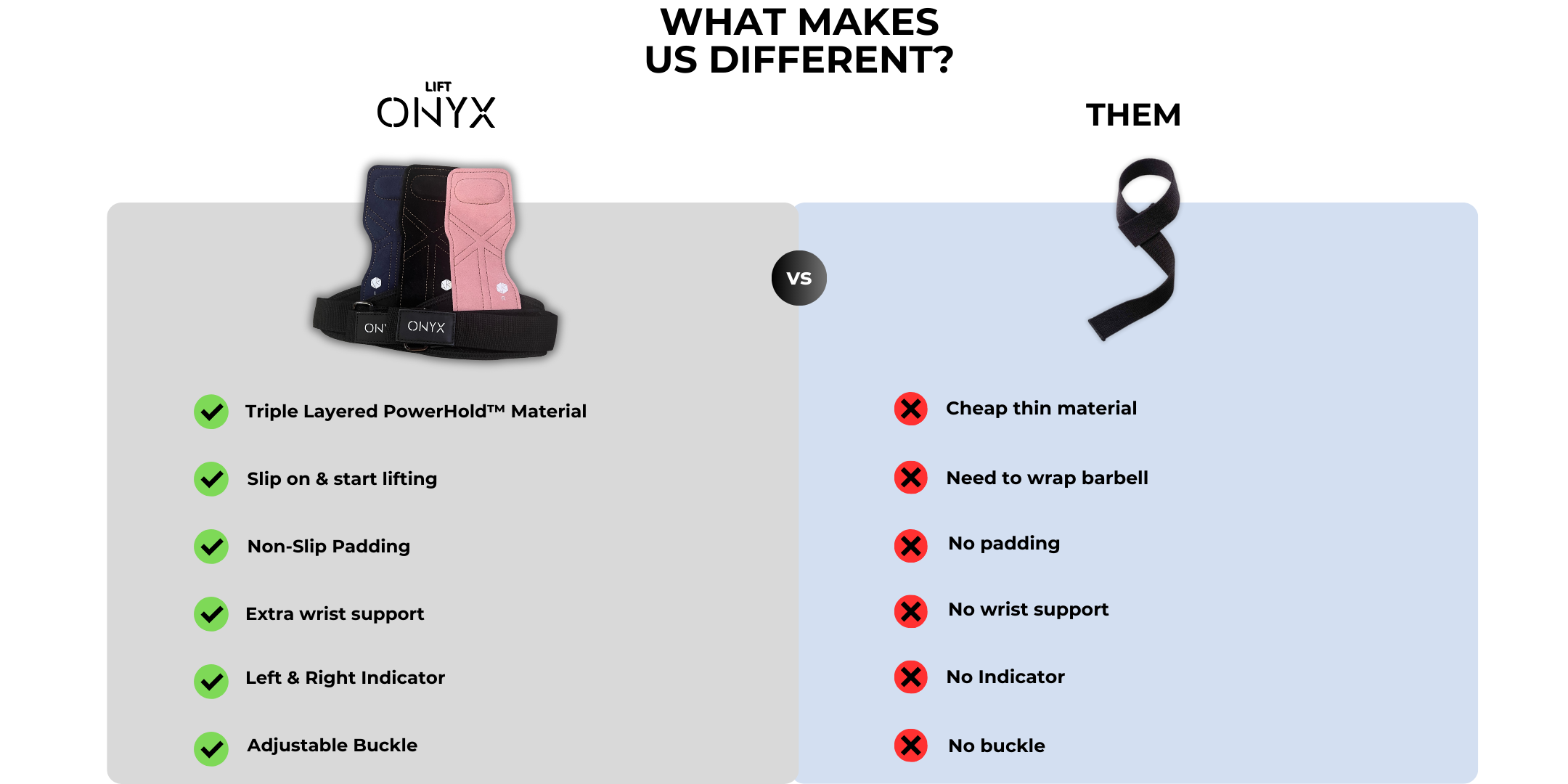 Learn how ONYX Grips elevate your performance to new levels. Suitable for all pulling and pushing exercises, they replace gloves, lifting straps, and wrist supports.